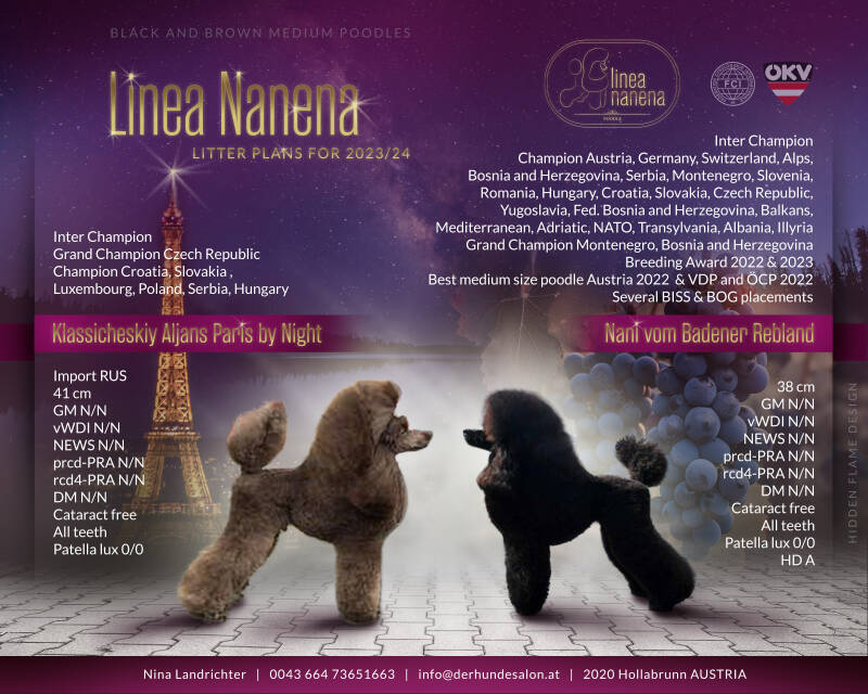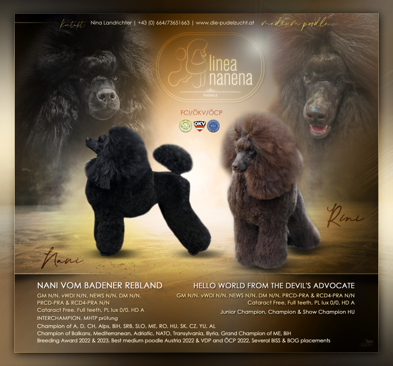 1 Hündin braun, 1 Hündin schwarz, 1 Rüde schwarz